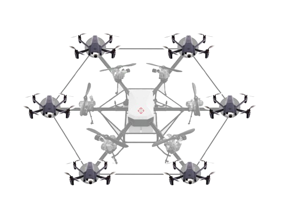 Our innovative swarm drone platform concept allows our NATO partners to customize their individual requirements for air, land and sea operations. Up to 250 drones can be guided for different maneuvers. One carrier / surveillance drone carries 6 swarm drones. Special functions like blind flight and anti-ramming can be released by state authorities. We closely co-operate with Universität der Deutschen Bundeswehr, Muenich
